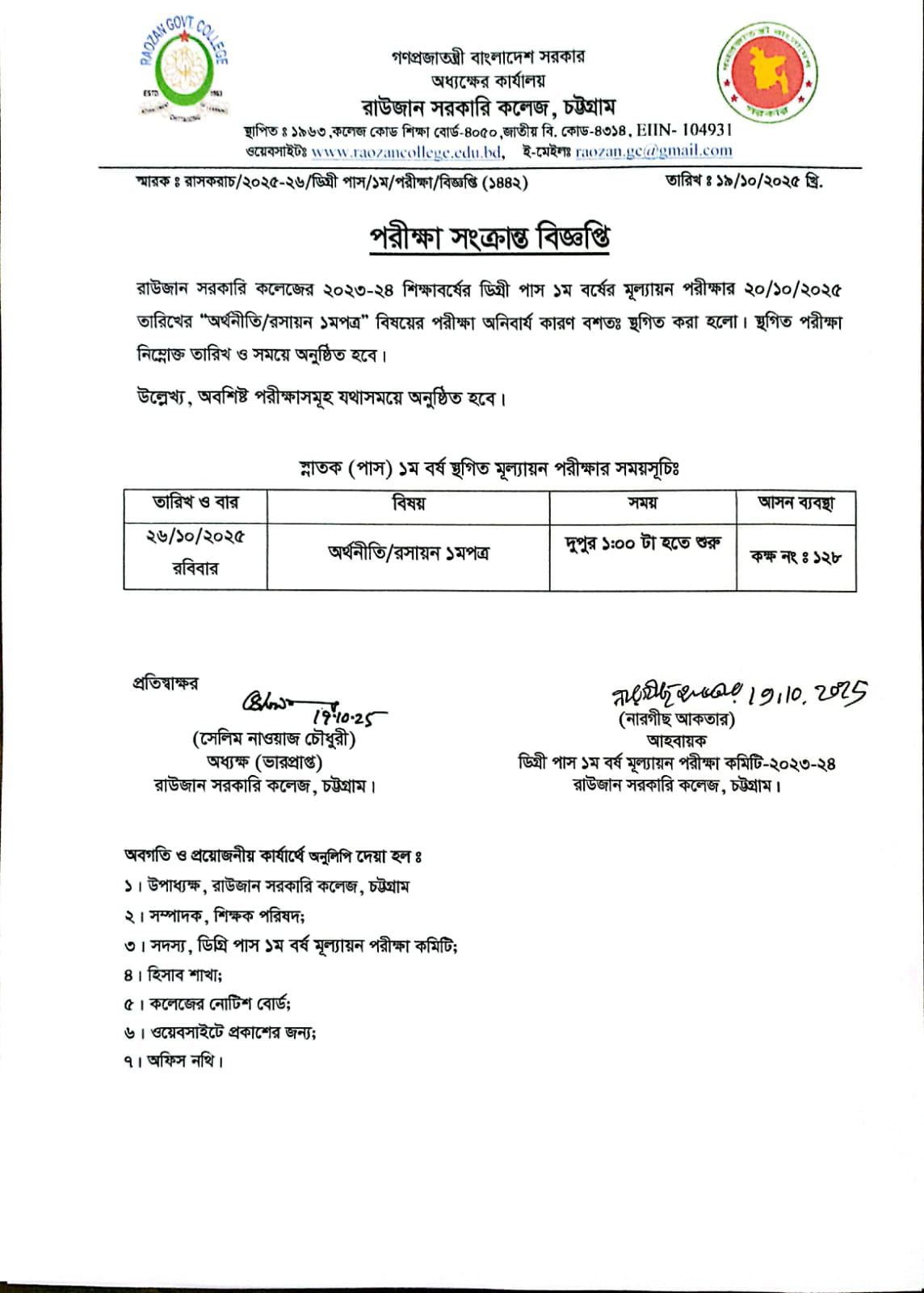 ২০২৩-২৪ শিক্ষাবর্ষের ডিগ্রি পাস ১ম বর্ষের ২০/১০/২০২৫ তারিখের মূল্যায়ন পরীক্ষা স্থগিত সংক্রান্ত বিজ্ঞপ্তি। Published By: | Published on: 19/10/2025