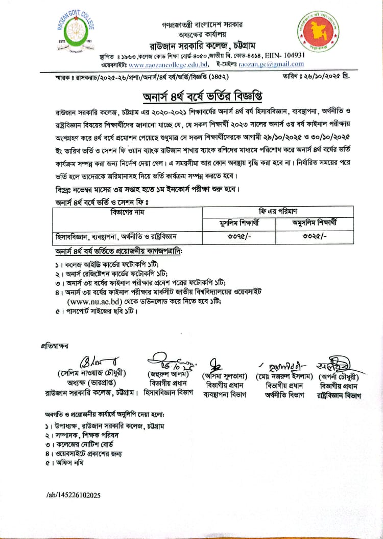 ২০২০-২০২১ শিক্ষাবর্ষে অনার্স ৩য় বর্ষে উত্তীর্ণ শিক্ষার্থীদের ৪র্থ বর্ষের সেশন ফি জমাদান সংক্রান্ত Published By: | Published on: 26/10/2025