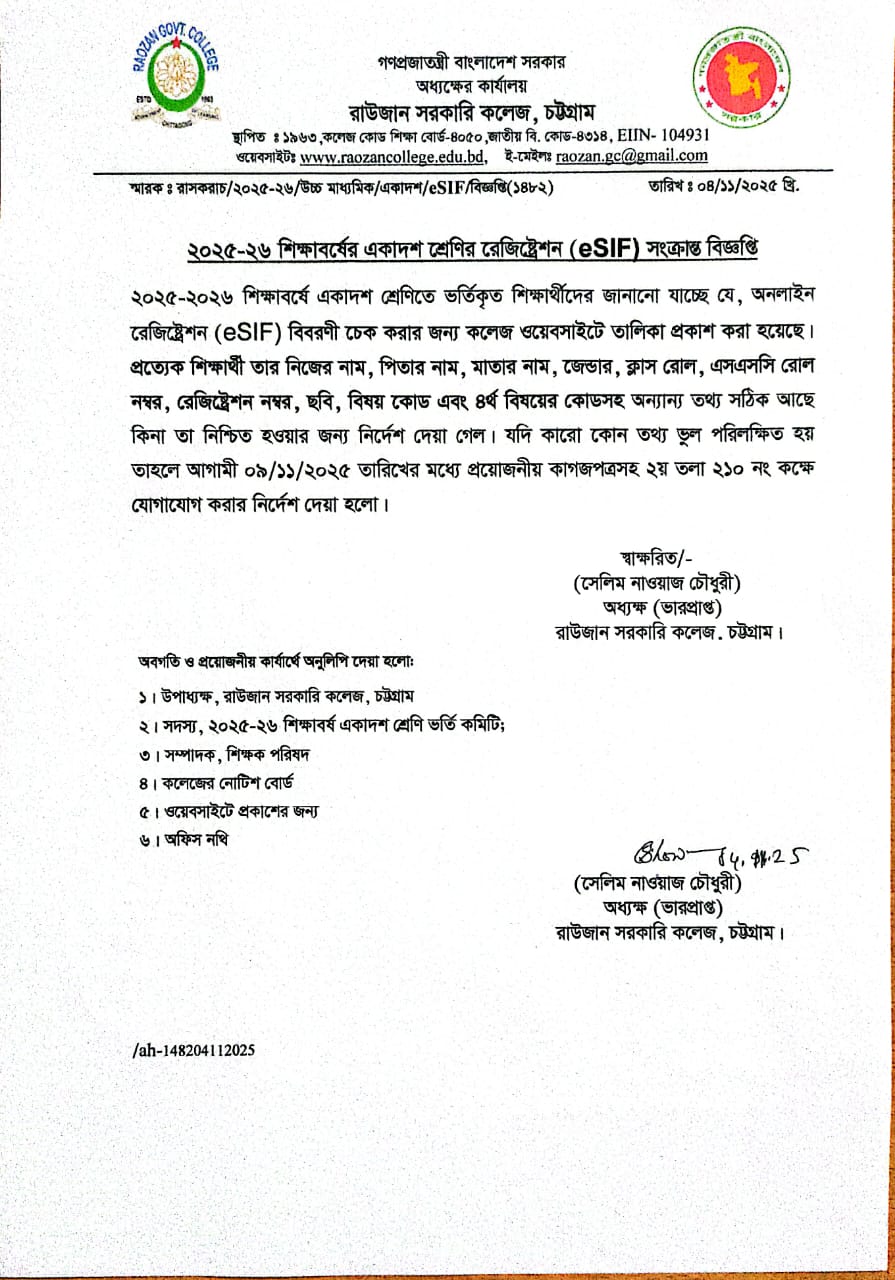 ২০২৫-২৬ শিক্ষাবর্ষের একাদশ শ্রেণির রেজিষ্ট্রেশন সংক্রান্ত বিজ্ঞপ্তি। Published By: | Published on: 04/11/2025